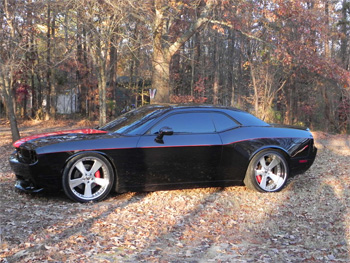 We were originally approached by Bruce to just add a cam and port the heads on his 09 SRT 8 Hemi Challenger that had already been fitted with twin STS rear mounted turbos.When we were finished we had built him a 420 cu in Hemi stroker engine that is capable of making far more HP than the tiny STS turbos can supply. In the video below it made over 500 RWHP on it’s first real pull on a meager 5 lbs. of boost. The plan is to turn it up to closer to 18 lbs.. It has already won a trophy at a Chrysler only car show in the Lake Wyle area for Best Challenger.